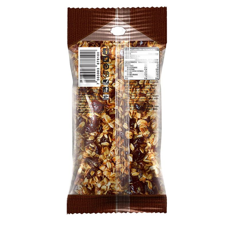 Elaborada con ingredientes cuidadosamente seleccionados por su frescura, pureza y aporte nutricional, esta granola es una combinacion balanceada y gourmet que incluye: avena en hojuelas rica en fibra, pasita natural con su dulzura frutal, amaranto reventado lleno de proteina vegetal, cacahuate tostado para una textura crujiente, arroz inflado ligero, semilla de ajonjoli fuente de minerales, y un delicado toque de vainilla natural que redondea cada bocado con un aroma irresistible.